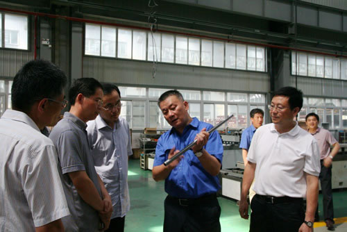 8月10日下午,浙江省經信委李上葵總工程師帶領全省推進龍頭骨干企業發展和塊狀經濟轉型升級第七服務組蒞臨杭機股份調研考察。杭州市經信委郝志毅副主任參加調研。公司領導孫益民、何衛、周哲平和臨安經發局的領導予以熱情接待,并陪同參觀企業主要機床裝配生產現場。