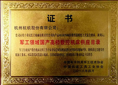 軍工行業國產數控機床應用工作專家委員會嚴格篩選并通過在應用現場效果評價,最終確定我公司開發的MGKF600/8數控高精度立式復合磨床列入了軍工領域國產高檔數控機床供應目錄,杭機股份將作為軍工采購國產機床的重點推薦企業。