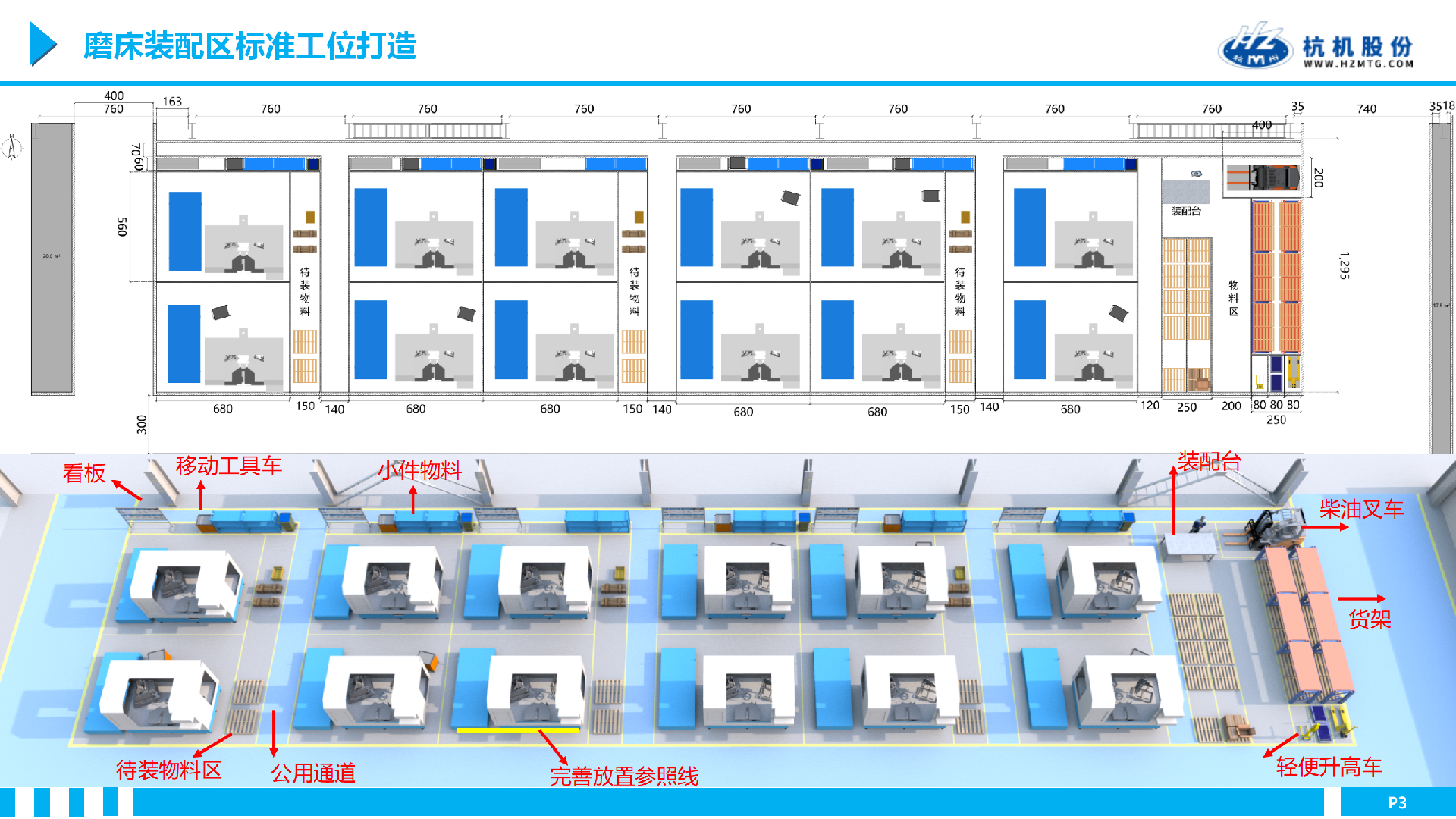 在執行過程中,浙江杭機股份有限公司通過生產現場布局優化及目視化體系建立,定期對職工與管理人員意識及管理水平進行培訓,班前會推行落地,宣傳欄知識科普等形式,落地6S目視化管理方法,切實做到杜絕七大浪費,堅持精益化生產理念,力求優化生產過程,營造高效有序生產環境。