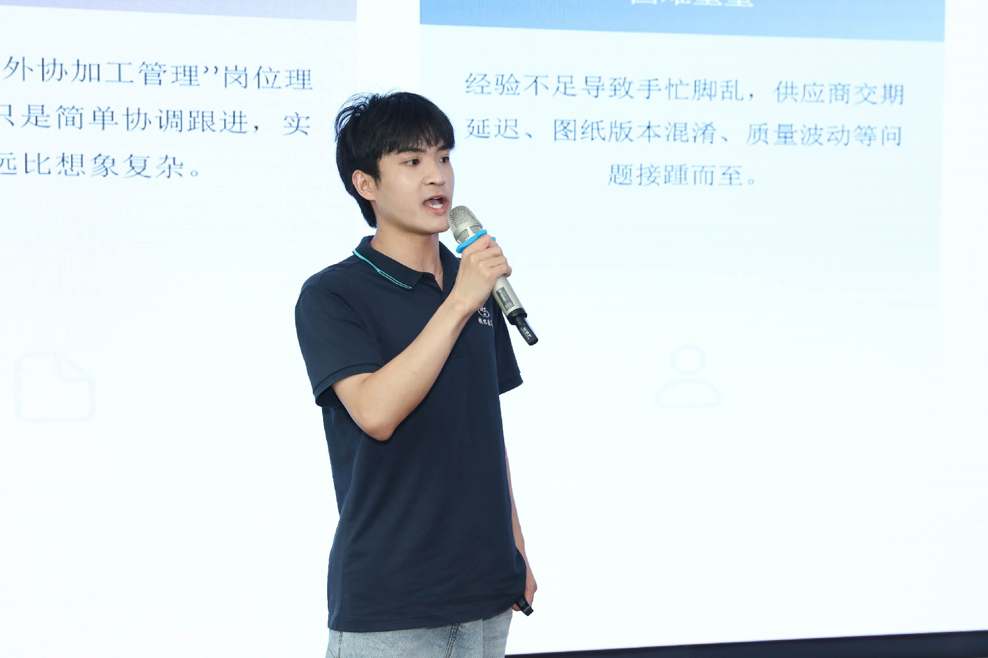 決賽現(xiàn)場(chǎng),16名來(lái)自不同崗位的參賽選手依次登臺(tái)。他們中既有扎根車間三十載的老技工,也有青年研發(fā)工程師,更有新入職就感受到滿滿杭機(jī)力量的新員工。演講內(nèi)容緊扣“匠心傳承”“智造突圍”“黨員先鋒”等關(guān)鍵詞,配合多媒體視聽呈現(xiàn),引發(fā)陣陣掌聲。